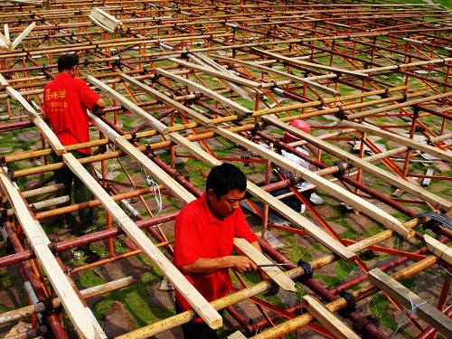 2008中國湖南國際旅游節(jié)已經進入倒計時,作為本次活動重頭戲的開幕式演出節(jié)目正在進行緊張的排練,而備受關注的開幕式舞臺工程到底建設進度如何?8月13日,據(jù)承建單位張家界喜洋洋文化傳播有限公司工作人員介紹,開幕式舞臺工程已完成1/3,現(xiàn)正進行第二表演區(qū)的鋼管搭建和木板鋪設,其它各項工程進展順利,能在8月25日如期接受組委會驗收。