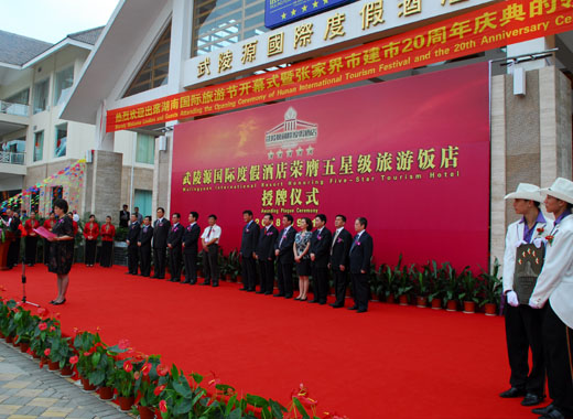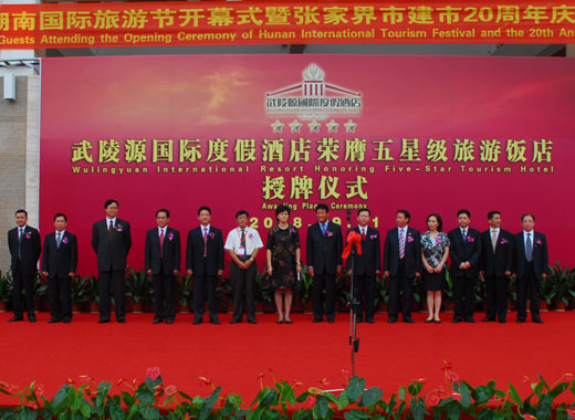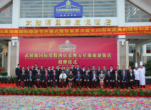 2008年9月11日,武陵源國(guó)際度假酒店隆重舉行“榮膺中國(guó)旅游飯店五星級(jí)授牌儀式”,國(guó)家旅游局副局長(zhǎng)張希欽先生為酒店授牌,甘霖副省長(zhǎng)在儀式上發(fā)表了講話。