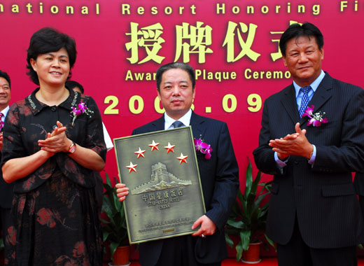 現(xiàn)在位置:主頁(yè)->旅游快訊-> 2008年9月11日武陵源國(guó)際度假酒店隆重舉行五星級(jí)授牌儀式
