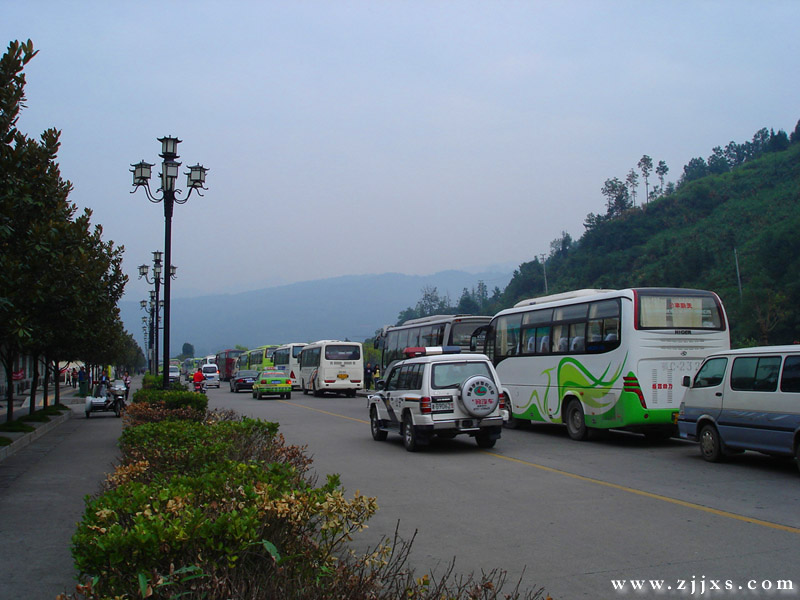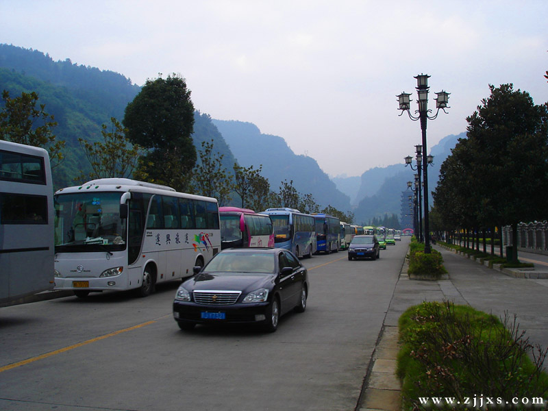(武陵源大道上自駕車在交警的指輝下,有序停靠)