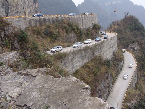 12月6日,來自長沙金鷹955自駕會所的50臺自駕車齊聚天門山天路,舉辦“挑戰(zhàn)通天大道,體驗(yàn)心跳之旅”的自駕活動。這是通天大道在2008年度迎來的第六次大型自駕活動。