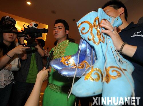4月24日,新疆“達(dá)瓦孜”傳人賽買提·艾山在新聞發(fā)布會(huì)上接受采訪。當(dāng)日,賽買提·艾山在新聞發(fā)布會(huì)上宣布,他將于25日在張家界天門山景區(qū)再次進(jìn)行高空大斜度走鋼絲極限挑戰(zhàn)。今年24歲的賽買提·艾山是新疆“達(dá)瓦孜”第七代傳人,已經(jīng)創(chuàng)造了高空鋼絲倒立時(shí)間最長、倒走距離最長以及坡度最陡三項(xiàng)吉尼斯世界紀(jì)錄。 新華社記者龍弘濤攝