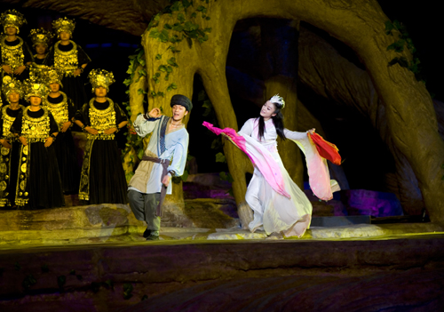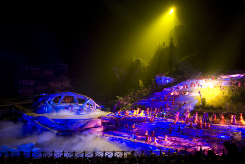 現(xiàn)在位置:主頁(yè)->旅游快訊-> 世界首臺(tái)大型山水實(shí)景音樂(lè)劇《劉?抽浴诽扉T山震撼試演