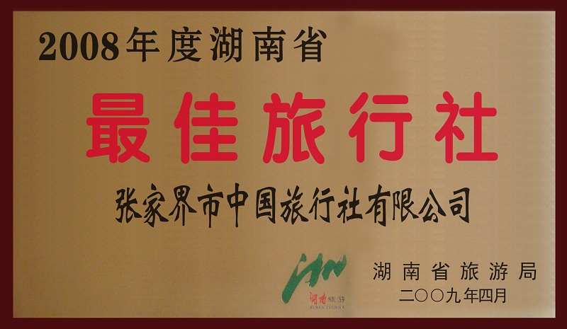 14、2009年4月被湖南省旅游局評為《2008年度湖南省最佳旅行社》