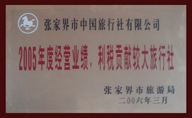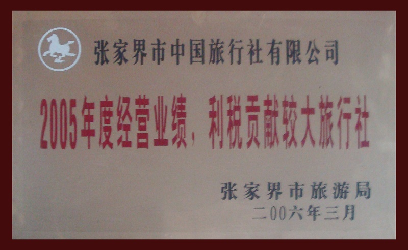 6、2006年3月被張家界市旅游局評為《2005年度經(jīng)營業(yè)績,利稅貢獻(xiàn)較大旅行社》