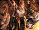 (注:張家界市場上出售的臘肉一般有兩種:一種為專門的熏烤店熏制的臘肉,另一種為農(nóng)家自制的臘肉。以上兩種臘肉,前種包裝精美,后種無包裝,但味道特別香淳。) |