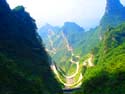 天門山,距市區(qū)僅8公里,海拔1518.6米,是張家界的文化圣地,被尊為“張家界之魂”,有湘西第一神山的美譽(yù)。山體孤峰高聳、氣勢臨空獨(dú)尊,世界最高海拔的天然穿山溶洞——天門洞,懸于千尋素壁之上,成為奇絕天下的勝景,也成就了當(dāng)?shù)厣詈、大氣的“天文化”和“仙山文化”。占地萬余平方米的天門山寺,自明朝以來香火鼎盛,是湘西的佛教中心!疤扉T洞開、鬼谷顯影、獨(dú)角瑞獸”等六個(gè)千百年來的難解之謎,渲染著撲朔迷離、神秘出塵的氣氛。 天門山還是張家界的第二個(gè)國家森林公園,擁有世界罕見的高山珙桐群落,山中四季野趣盎然,春有竹櫸斗翠,夏擁飛瀑疊云,秋至層林盡染,冬來迭嶂團(tuán)雪,變幻多姿,深遠(yuǎn)有致,宛如一座美不勝收的神仙花園。天門山是集神奇獨(dú)特的地質(zhì)外貌、歷史悠久的宗教文化、異彩紛呈的人文勝跡、豐富寶貴的自然資源于一體的旅游度假勝地。飛跨7.2公里的客運(yùn)索道,以世界第一的長度,令游客從城市花園直達(dá)原始空中花園,擺脫都市喧囂浮躁,感受天人合一的明澈寫意,從而擁有終身難忘的旅游體驗(yàn)。