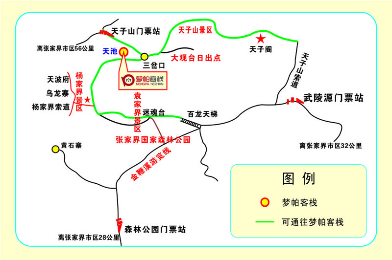 交通狀況:張家界與全國(guó)各大中城市有飛機(jī)、高速公路和火車(chē)相連,景區(qū)內(nèi)環(huán)保客運(yùn)車(chē)輛招手即停,景區(qū)游道四通八達(dá)。張家界夢(mèng)帕客棧天子山景區(qū)天池店,位于張家界著名游覽線天子山至袁家界的主干線上,進(jìn)出方便。
