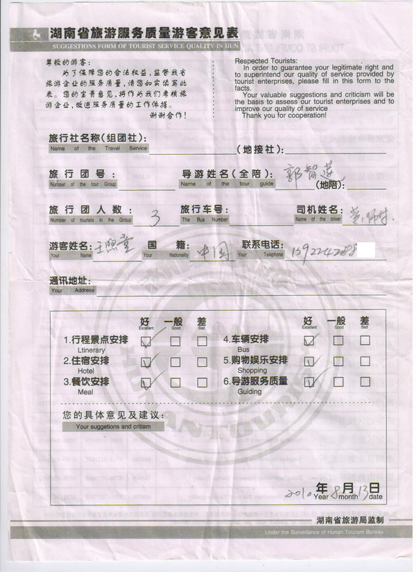 廣州王煦童一行3人旅游質(zhì)量回饋