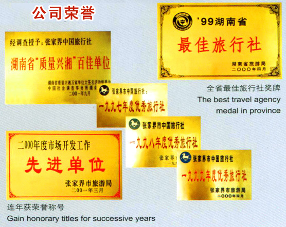 張家界市中國旅行社部分獎章榮譽