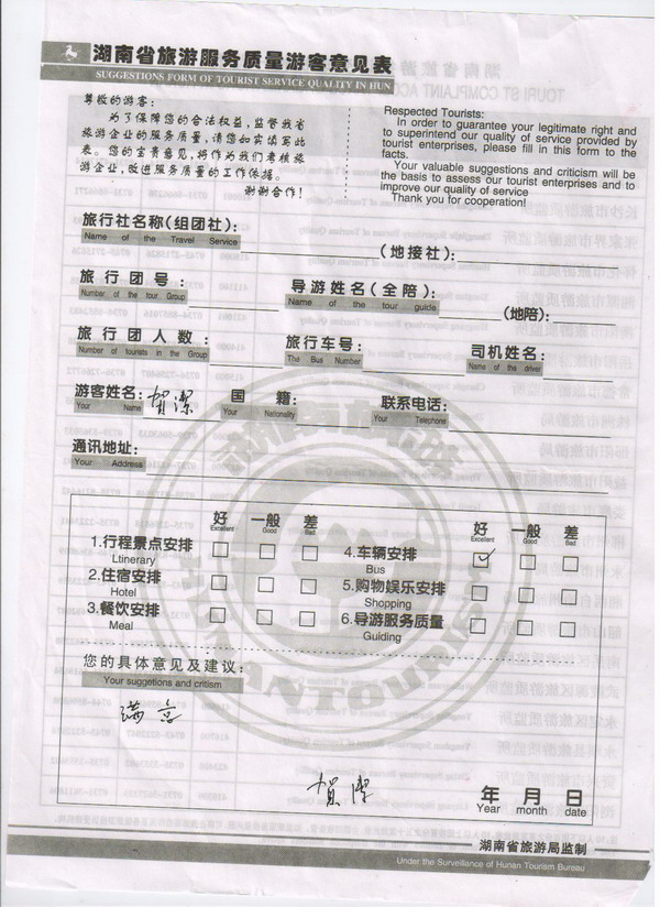臺灣賀潔一行6人旅游質(zhì)量回饋