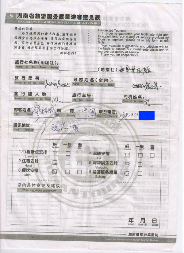 廣西荔浦廖祖斌10人旅游質量回饋:全都很好!