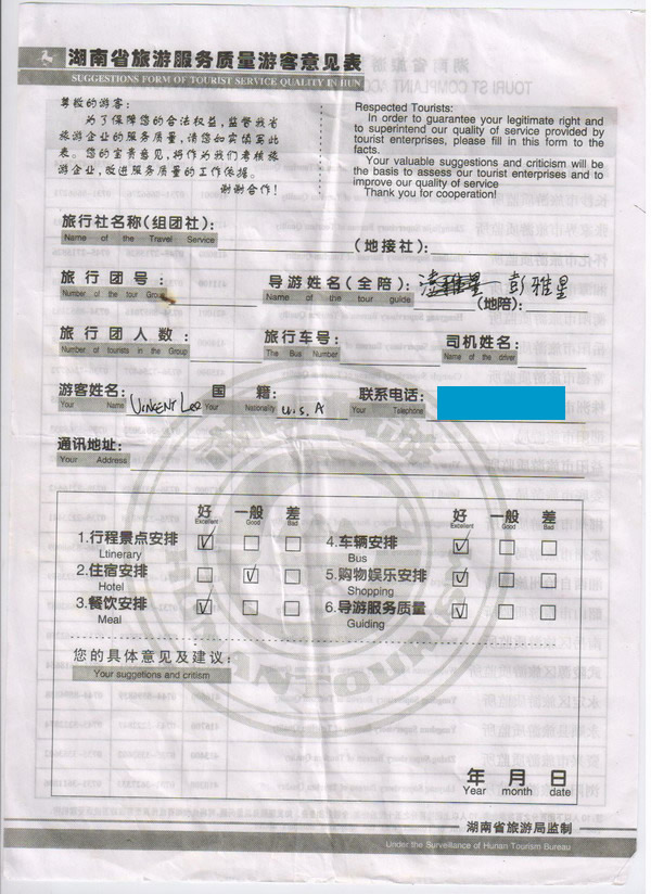 美國(guó)Ulee先生一行5人旅游質(zhì)量回饋