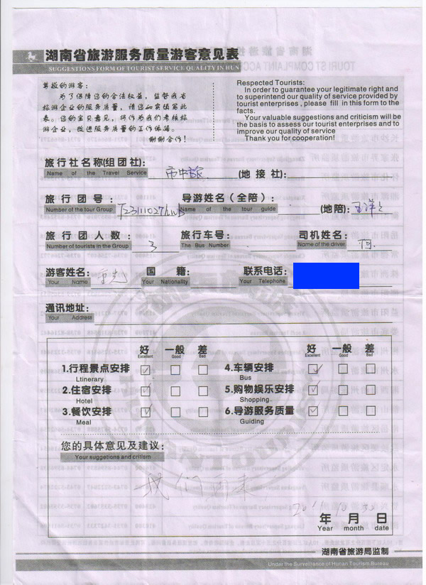 日本重光先生一行3人旅游質(zhì)量回饋: