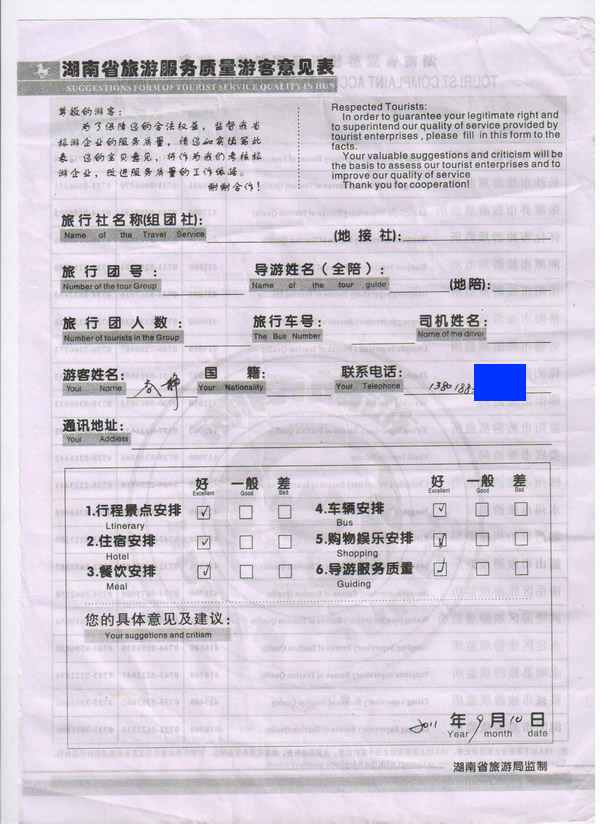 上海李小姐一行18人旅游質(zhì)量回饋
