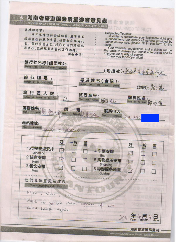馬來西亞顏小姐一行6人旅游質(zhì)量回饋