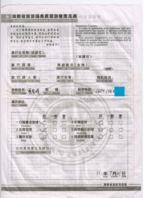 北京賈小姐一行5人旅游質(zhì)量回饋