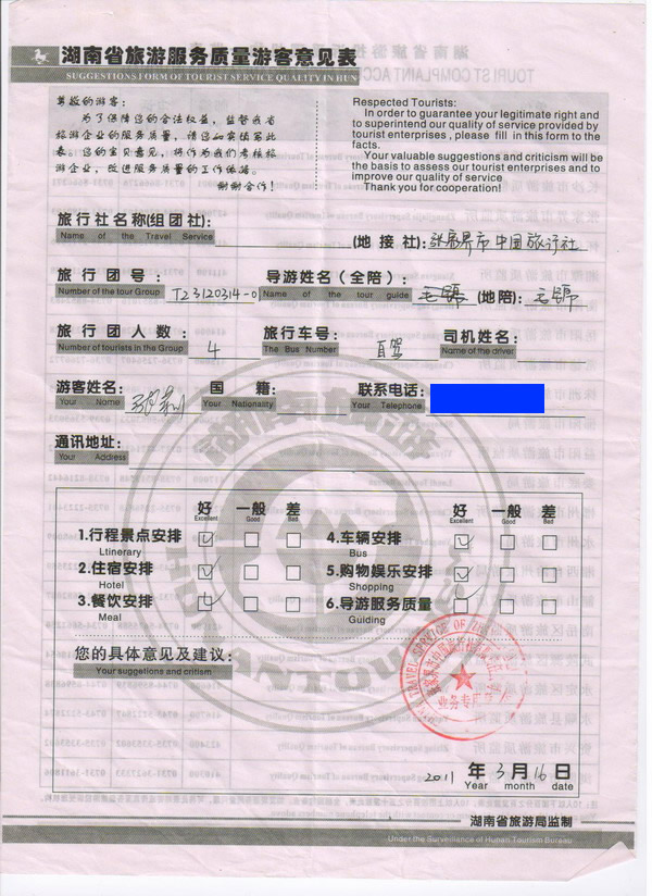 江西張小姐一行4人旅游質(zhì)量回饋