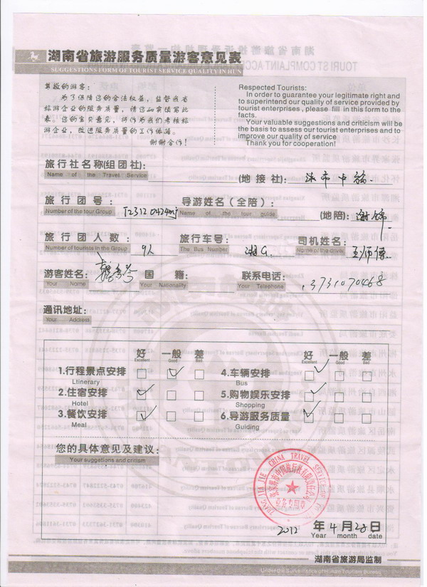 河北魏女士一行9人旅游質量回饋
