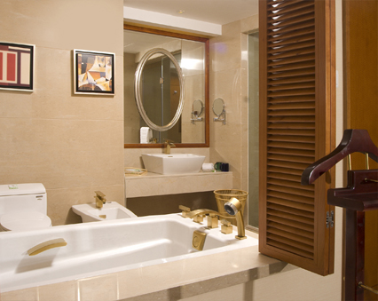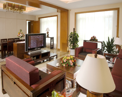 大使套房:面積153平方米,由一個(gè)客廳、一書(shū)房和兩個(gè)臥室組成,所有房間都可看到百丈峽風(fēng)光。
