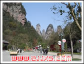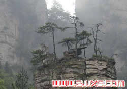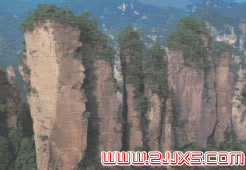 了望臺(tái)西南200米處,為黃石寨頂上的一號(hào)觀景臺(tái)。站在這個(gè)上,可以見(jiàn)到一組組的石峰群象一堆堆的盆景羅列在深谷中,既雄奇崔嵬,又富有狂涓氣。一座石峰的頂部分成五根并列屹立的石柱,中間一根較高,象伸開(kāi)的五根手指。每根石柱上都長(zhǎng)有小草雜樹(shù),增添了手指的神秘氣氛。 |
