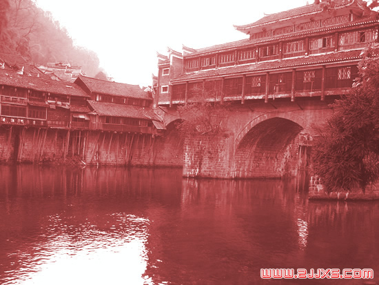 這座橋始建于明洪武初年,頗信風(fēng)水的鳳凰人都說,這座橋斬斷的是一條龍頸,令一條巨龍身首異處。怪只怪那位和尚出生的安徽小子朱元璋,聽信一位從昆侖山開始追索一支龍脈,經(jīng)云貴高原來到五寨司城的陰陽先生的讒言,說這兒屏立南郊?xì)鈩莘欠驳哪先A山和與之一脈相承一頭扎入沱江的奇峰,就是他要尋找的龍頭。并由此推斷出總有一天這地方會有人出來問鼎中原,真命天子將出。那位朱皇帝豈能允許邊遠(yuǎn)的鳳凰有他潛在的對頭?于是朱筆一勾,龍頸被斬,鳳凰風(fēng)水遭毀滅性破壞,鳳凰再也出不來皇帝了。