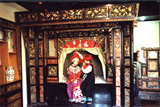 【中堂講解】現(xiàn)在您所走進(jìn)的是傳統(tǒng)土家建筑的第一間房子,我們稱之為中堂或者堂屋。堂屋是個(gè)莊重.講禮的地方,祭祀,婚葬嫁娶一類的大事都要在這兒興行。堂屋正中是神龕,一般土家都得供奉相當(dāng)豪華精致的神龕,最上面雕的是二龍戲珠,兩邊是丹鳳朝陽,中間是福壽祿三星高照,土家人早晚都在這里朝拜。湘西土家人是多神論的,雖然沒有自己正式的宗教,但是有一定雛形的由巫師主持的原紿教——土老司。土家的土老司為”梯瑪“。做土老司的主要內(nèi)容就是祭祀土王,敬奉土家祖先。如果您有興趣,也可以在這兒 下您的心愿,接受土家神靈的庇護(hù),拜上拜一拜,保您心想事成同,健康長(zhǎng)壽。