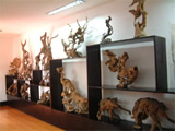 【根雕館講解】我們館主不僅是收藏家,而且還是根雕.盆景藝術(shù)家,這個(gè)展館里所有的根雕展品均是我們館主陳楚華先生親自創(chuàng)作的,他制作的根雕盆景構(gòu)思奇特,極富地域特色.民族個(gè)性,灑脫自然以饒有野趣,作品多次在國(guó)內(nèi)外榮獲大獎(jiǎng)。因酷愛收藏,他走上了(以藝養(yǎng)藝)的路子,以創(chuàng)作養(yǎng)收藏,為此他賣掉了很多心愛的作品,但也因?yàn)檫@樣,秀華山館也才得以發(fā)展壯大。
