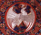 【織錦挑花館講解】它陳列著我們土家繡品中最具代表性的織錦和挑花。挑花是土家婦女的主要編織之一,挑花圖案主要是分組對(duì)稱,以花.鳥.蟲.魚等單一的動(dòng)植物組成各種圖案,處“改土歸流”以后,土家族受漢文化的影響越來越大,不少土家人已懂漢文,以后發(fā)展到人物圖案.文字圖案,一度成為時(shí)尚比比皆是。如松柏同年.長(zhǎng)生不老.狀元及第.連長(zhǎng)升三元等,看到這些刺繡上面繡的文字。(舉例猜謎:“黃金萬兩”.“九千九百九十九”和“福祿壽喜”,前兩圖案巧用文字組合而成,具有很強(qiáng)的抽象意味,“福祿壽喜”則帶著象征和寓意性。)織錦,我們土家人稱之為(西蘭卡普),它距今已經(jīng)有1200年的歷史了,自北宋到明清各朝均是湘西土家人向皇宮進(jìn)貢的珍貴貢品,按照習(xí)俗,土家結(jié)娘從十一.二歲就列始學(xué)習(xí)織錦,圖案花色由簡(jiǎn)到繁,到成年之后,?椀母鞣N紋樣已牢記在心,無需藍(lán)本即可隨心制作。在土家山寨,幾家家家戶戶都有織機(jī),姑娘們以能織錦紋樣多少.配色的乖巧和織錦的技術(shù)來論聰明。陪嫁用的花被均姑娘自織自縫的,有的多達(dá)二十多條,而且花色各不相同?楀\圖案大致可分為六大類,有動(dòng)物.植物.日常用品.抽象幾何紋和天象題材。土家織錦聞名全國(guó),是我國(guó)民族藝術(shù)寶庫中的珍品。