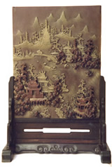 【鎮(zhèn)館之寶——五彩石雕講解】這是一塊用天然五彩石雕雕刻而成的一幅明代晚期的作品,反映的是宋代人日常生活的一幅“漁樵耕讀圖”。其中可見漁夫在水中撒網(wǎng),樵夫在山中伐木,橋面上有牧童牽牛,窗臺(tái)上可見書生捧書,作者根據(jù)五彩石的自然顏色,布局精純,雕鏤細(xì)微,一尺之中包羅萬象。現(xiàn)在經(jīng)故宮愽物院的專家反復(fù)考證,認(rèn)為這塊五彩石雕具有極高的收藏價(jià)值,受到了包括沈從文.黃永玉 等大師的高度贊譽(yù),被譽(yù)為秀華山館的“鎮(zhèn)館之寶”。 |
