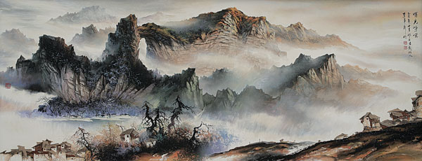 2004年,人民大會(huì)堂收藏李軍聲的砂石畫《巍巍天門》。