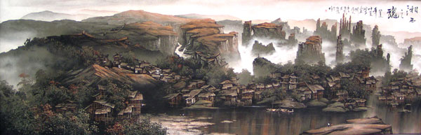 湘西土家族畫家李軍聲的砂石畫,在當(dāng)代中國(guó)多元發(fā)展的畫壇上領(lǐng)異標(biāo)新,別具一格,曾受到張仃等老畫家的獎(jiǎng)掖和國(guó)內(nèi)外許多觀眾的贊賞。 李軍聲的砂石畫屬于一種綜合材料藝術(shù)。拼貼(collage)或綜合材料(mixed media)是西方現(xiàn)代藝術(shù)常用的媒介。20世紀(jì)初,畢加索等西方現(xiàn)代畫家就已開始嘗試用各種材料在畫布上拼貼。20世紀(jì)中葉,法國(guó)畫家迪比費(fèi)(Dubuffet)曾用沙子、泥土、石膏、膠、瀝青等材料涂沫畫布表面;西班牙畫家塔皮埃斯(Papies)也曾用沙土、熟石灰、膠等混合材料作畫;美國(guó)畫家波洛克(Pollock)受到印第安土著居民的“沙畫”的啟發(fā),把攙雜沙子、玻璃碎片等材料的油彩滴流在畫布上。這些都是典型的西方現(xiàn)代綜合材料藝術(shù)。不過,李軍聲的砂石畫,并非對(duì)西方現(xiàn)代綜合材料藝術(shù)的挪用和模仿,而是他憑借自己的審美感悟發(fā)現(xiàn)和創(chuàng)造的一種獨(dú)特的綜合材料藝術(shù),是中國(guó)本土土生土長(zhǎng)的一種現(xiàn)代藝術(shù)。李軍聲也許并不了解迪比費(fèi)、塔皮埃斯、波洛克等西方現(xiàn)代畫家,但他創(chuàng)造的砂石畫卻取得了與西方現(xiàn)代畫家的綜合材料藝術(shù)異曲同工的視覺效果,而且更富有中國(guó)本土特別是湖南張家界本地的藝術(shù)特色。砂石畫 [1]李軍聲,這位用砂石書寫傳奇的人,1994年在北京中國(guó)美術(shù)館成功舉辦了個(gè)人砂石畫展;1999年,砂石畫《武陵山水甲天下》被昆明世博會(huì)中國(guó)館珍藏;2000年,砂石畫《古城》榮獲第三屆中國(guó)工藝美術(shù)精品博覽會(huì)金獎(jiǎng);2003年砂石畫《風(fēng)景》被中南海收藏;2004年砂石畫《風(fēng)景再現(xiàn)》參加法國(guó)“巴黎.中國(guó)書畫展”,《武陵之魂天門山》被國(guó)家貿(mào)促會(huì)作為2005年日本國(guó)際世博會(huì)中國(guó)館接待廳唯一繪畫作品陳列收藏。他的藝術(shù)成就被海內(nèi)外眾多媒體專題報(bào)道,他的名字被收入多部名人典籍。 李軍聲創(chuàng)造的砂石畫,大膽突破傳統(tǒng)繪畫用材,利用自然植物的色相創(chuàng)造性地衷用自然,極具藝術(shù)價(jià)值與收藏。他說(shuō)過:“一件精美的藝術(shù)品不受材料和技巧的束縛,而取決于創(chuàng)作者的心靈感悟”。軍聲畫院和軍聲砂石畫就是這樣一處閃爍在張家界自美景中的,獨(dú)具藝術(shù)魅力的人文景觀。