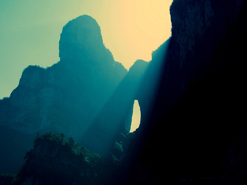 順勢(shì)而上,可見幾座遠(yuǎn)峰迎面而來(lái),外形如根根箭桿,共有九座相連,傳說(shuō)是后羿射日的九根箭桿所化而成.美麗的傳說(shuō)和神奇的景觀,融匯成了天門山的雄偉,奇俊和妖嬈,充盈著整條通天大道的旅程,最終讓人感受到的則是天門山的慧然靈氣!