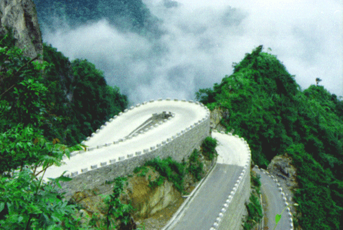 在穿過(guò)天門隧道后,就可以欣賞公路奇觀了,這時(shí)俯瞰通天大道,領(lǐng)略那蜿延迂回的旖旎風(fēng)采,在這么壯觀的自然與人文結(jié)合的奇觀面前,能使人油然而生一種內(nèi)心的最深刻最奇特最形象最讓人遐思的感慨.