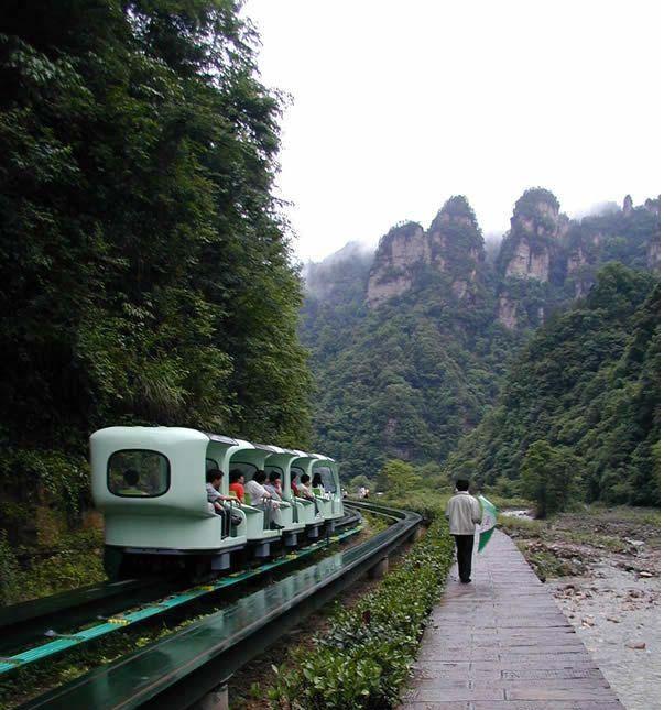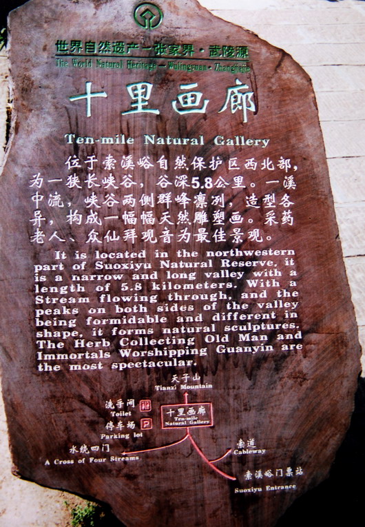 張家界十里畫(huà)廊位于索溪峪景區(qū),是該景區(qū)內(nèi)的旅游精華,在這條長(zhǎng)達(dá)十余里的山谷兩側(cè),有著豐富的自然景觀,人行其間如在畫(huà)中。溝旁黛峰屏列,山上的巖石形成了200來(lái)尊似人似物、似鳥(niǎo)似獸的石景造型,其中“孔雀開(kāi)屏”、“采藥老人”、“壽星迎賓”、“猛虎嘯天”等最為著名。