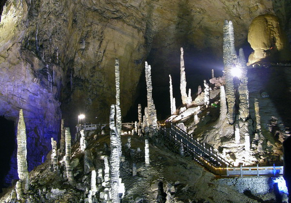 黃龍洞屬典型的喀斯特巖溶地貌,現(xiàn)已探明總面積48公頃,全長15公里,垂直高度140米,內(nèi)分二層旱洞,二層水洞。黃龍洞洞中有洞,洞中有河,由石灰質(zhì)溶液凝結(jié)而成的石鐘乳、石筍、石花、石幔、石枝、石管、石珍珠、石珊瑚等洞穴景觀遍布其中,無所不奇,無奇不有,仿佛一座神奇的地下“魔宮”。