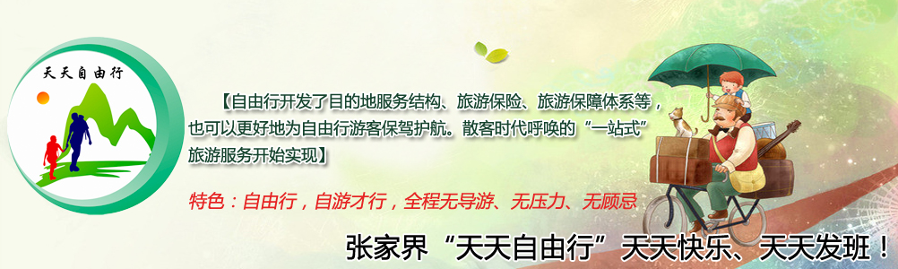“天天自由行”是由(張家界市中國旅行社、張家界海外國際旅行社有限公司、張家界中世國際旅行社有限公司、張家界天馬國際旅行社有限公司、張家界中青旅國際旅行社有限公司、張家界市青年旅行社有限公司、張家界湘西青年國際旅行社有限公司、中國旅行社總張家界公司等35家旅行社)共同開發(fā)的張家界新型旅游產(chǎn)品,我們是根據(jù)當(dāng)前旅游的發(fā)展趨勢,客戶群體所需求而進(jìn)行;“天天自由行”產(chǎn)品自由度和豐富度將是客戶的主要訴求;同時(shí),“天天自由行”也將主張服務(wù)能力的回歸;“天天自由行”張家界暢游無極限! 隨心而行,從這里開始!  “天天自由行”帶給你不一樣的輕松和驚喜!